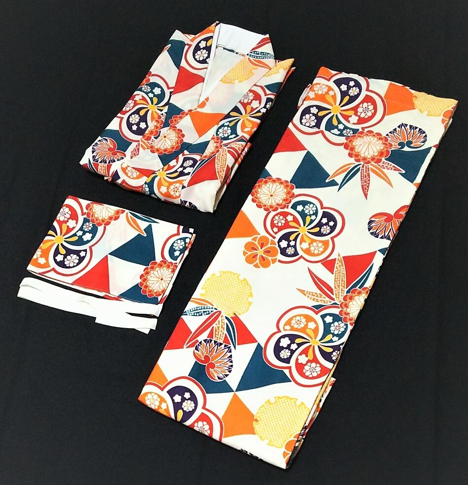 - 6414 二部式袷着物 *香乃逢* フリーサイズ 「・桃・菊・オレンジ」【わけあり】