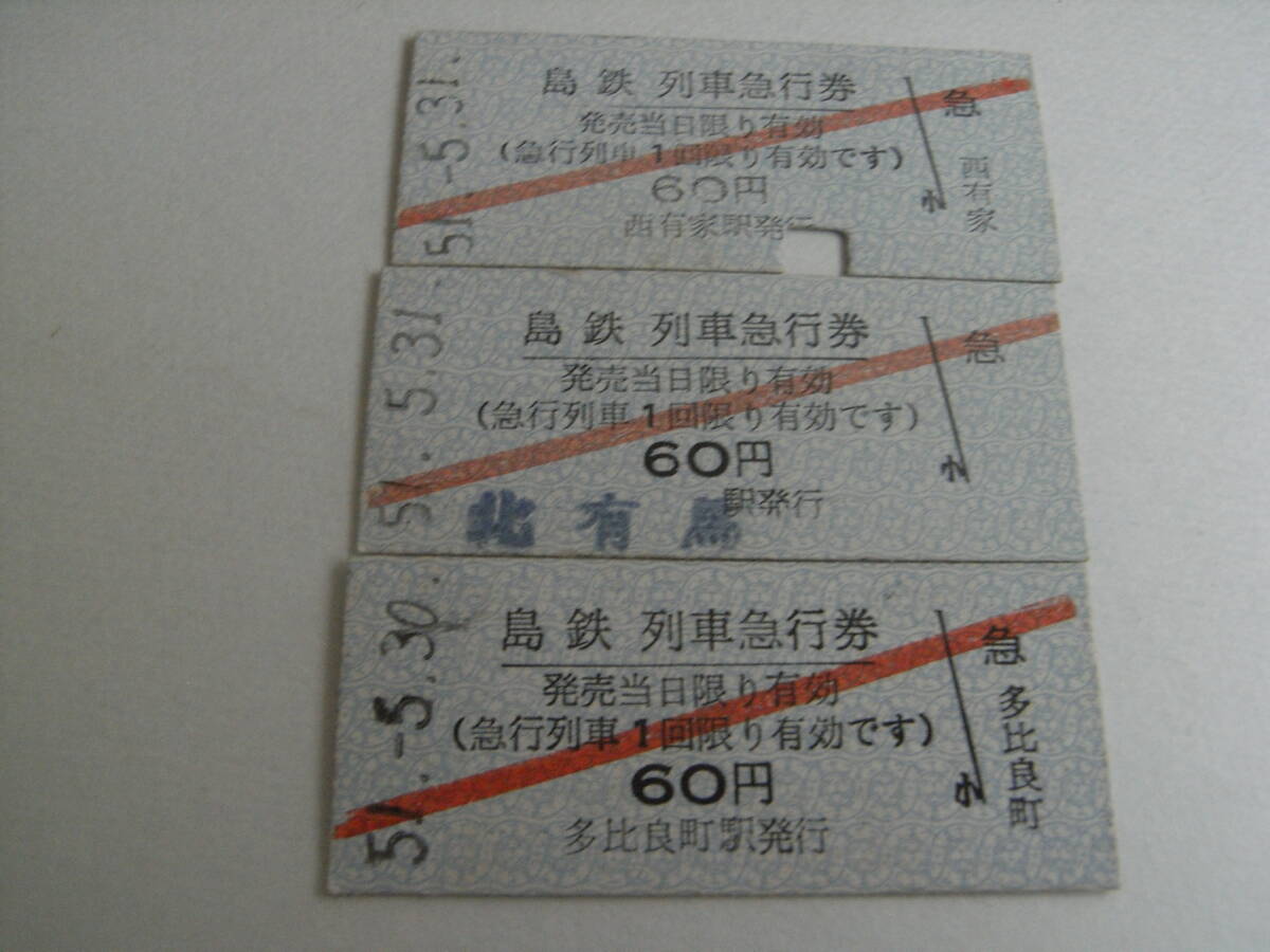 - 3枚/島鉄 列車急行券 60円 昭和51年5月 多比良駅発行・西有家駅発行・北有馬駅発行 3枚 島原鉄道
