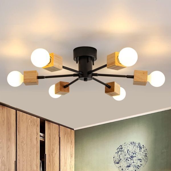 - chedar シーリングライト 木製 アームが動く アンティーク 6灯 天井照明 北欧 照明 おしゃれ シンプル LED電球対応 カフェ 【ブラック】