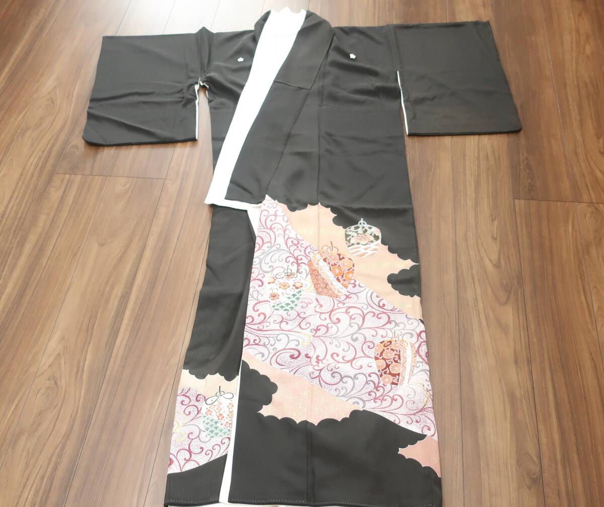 - 黒留袖★豪華 茶筒絵柄・USED 桔梗紋