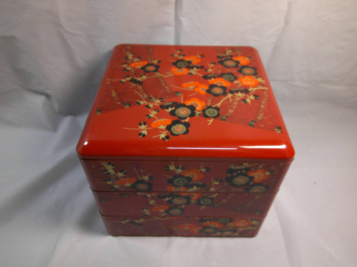 - ★未使用 重箱 3段 お重 梅柄 おせち料理 正月 お弁当箱 レッド 2段 華やか お花見 ランチボックス