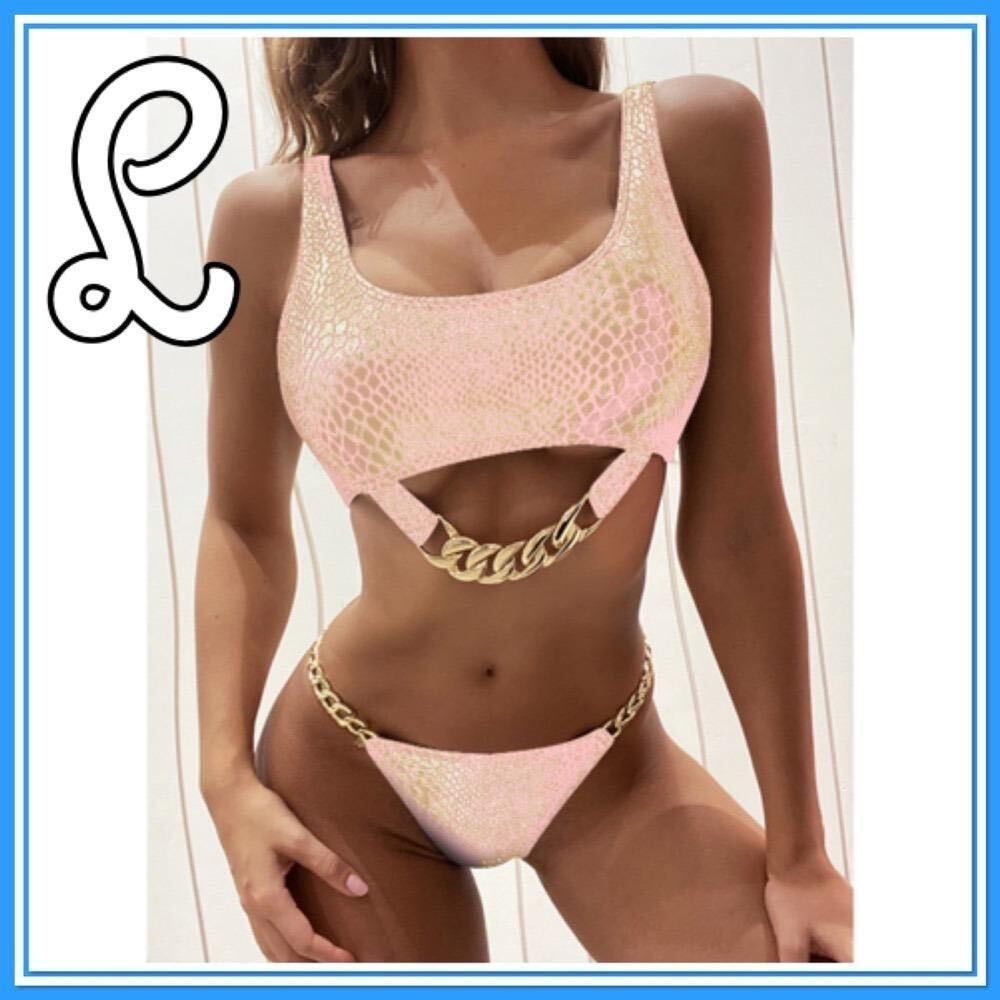 - ビキニ パイソン柄 セクシー 水着 セパレート 銀 ピンク ビーチ 海 セレブ 旅行 L