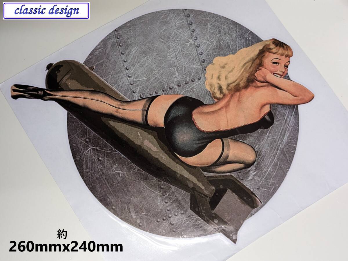 > 【特大 名作ミリタリ♪ボンバー約260㎜x240㎜】アート ピンナップガール★セクシーガール★車のステッカー★ミリタリーガールステッカー