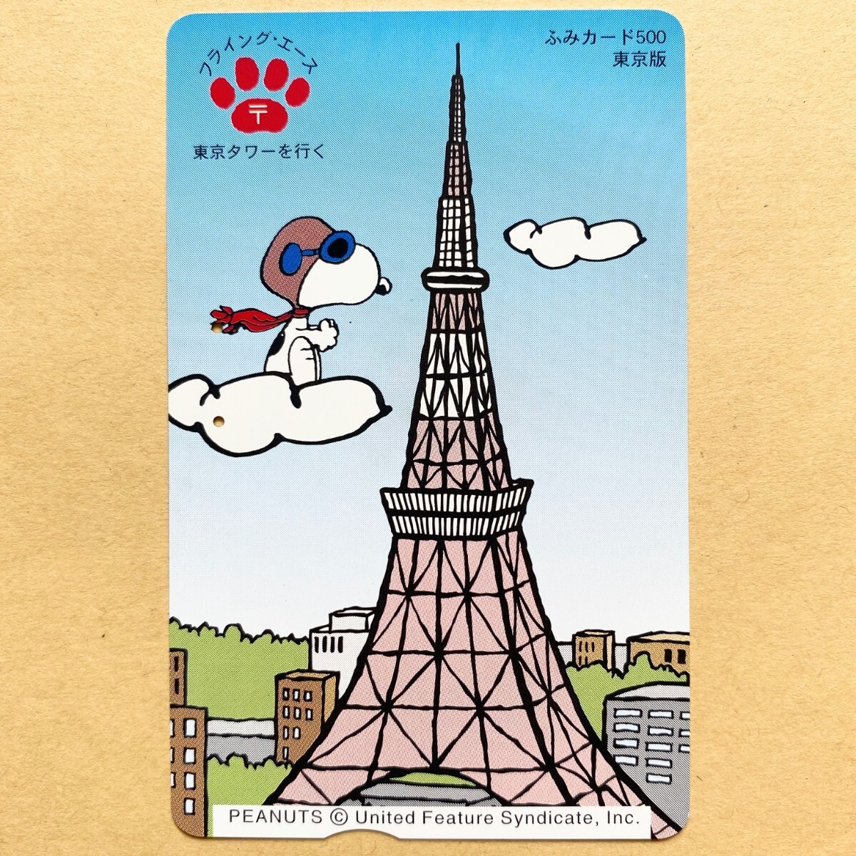 - 【使用済】 ふみカード 東京版 フライング・エース 東京タワーを行く スヌーピー