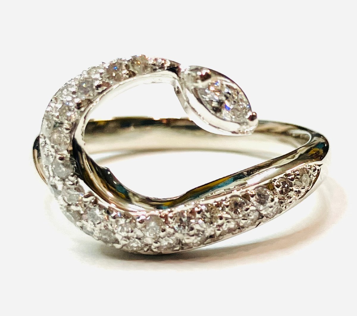 - qoj.Z1H02 PT950 プラチナ ダイヤリング D0.36 スネークダイヤ ヘビ 10号 新品仕上げ済み
