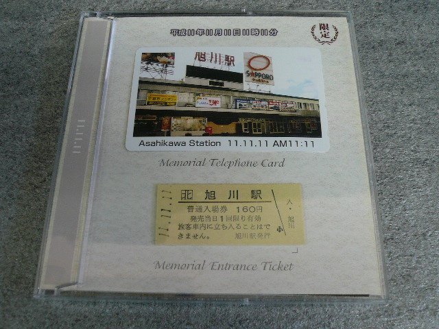 - ◆N-6760-45 テレカ 旭川駅 平成11年11月11日11時11分 メモリアル限定 テレホンカード 1枚 硬券・ケース付き