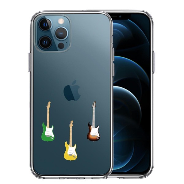 - iPhone12Pro ケース クリア カラフル ギター スマホケース 側面ソフト 背面ハード ハイブリッド