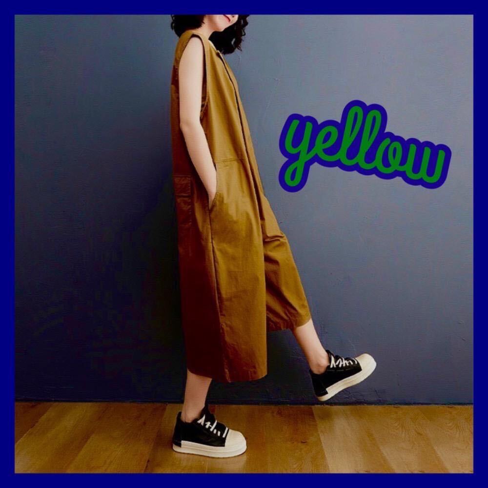 - サロペット オールインワン ノースリーブ ワンピース ワイド アジアン 黄色 L
