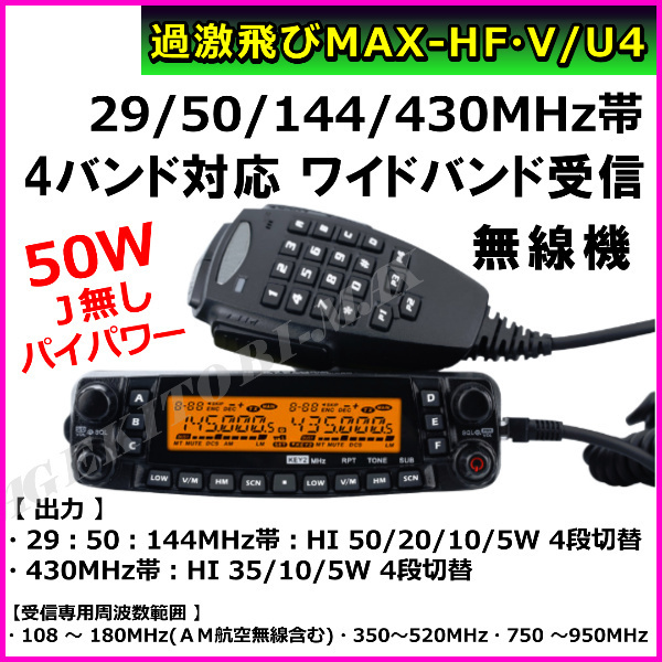 - 【HF・V/U4】29/50/144/430MHz クアッドバンド Jなし 50W 車載型 無線機 新品 過激飛びMAX/4バンド モービルトランシーバー アマチュア無線