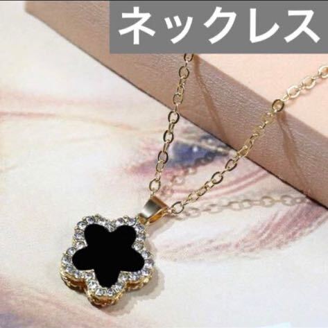 - キュービックジルコニア ブラック フラワー ネックレス ペンダント ゴールド