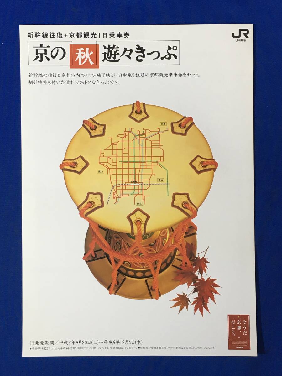 > E247イ●【チラシ】 京の秋 遊々きっぷ 新幹線往復+京都観光1日乗車券 JR東海 平成9年 ひかり号・こだま号料金/鉄道/当時物/レトロ