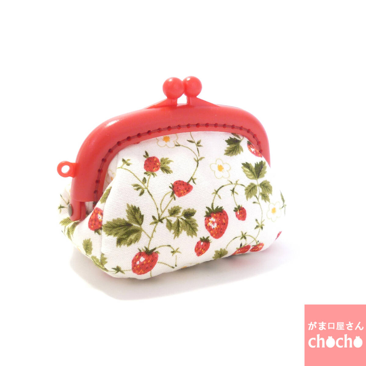 - プラフレーム がま口 小銭入れ イチゴ柄 苺 コインケース 財布 ハンドメイド G161