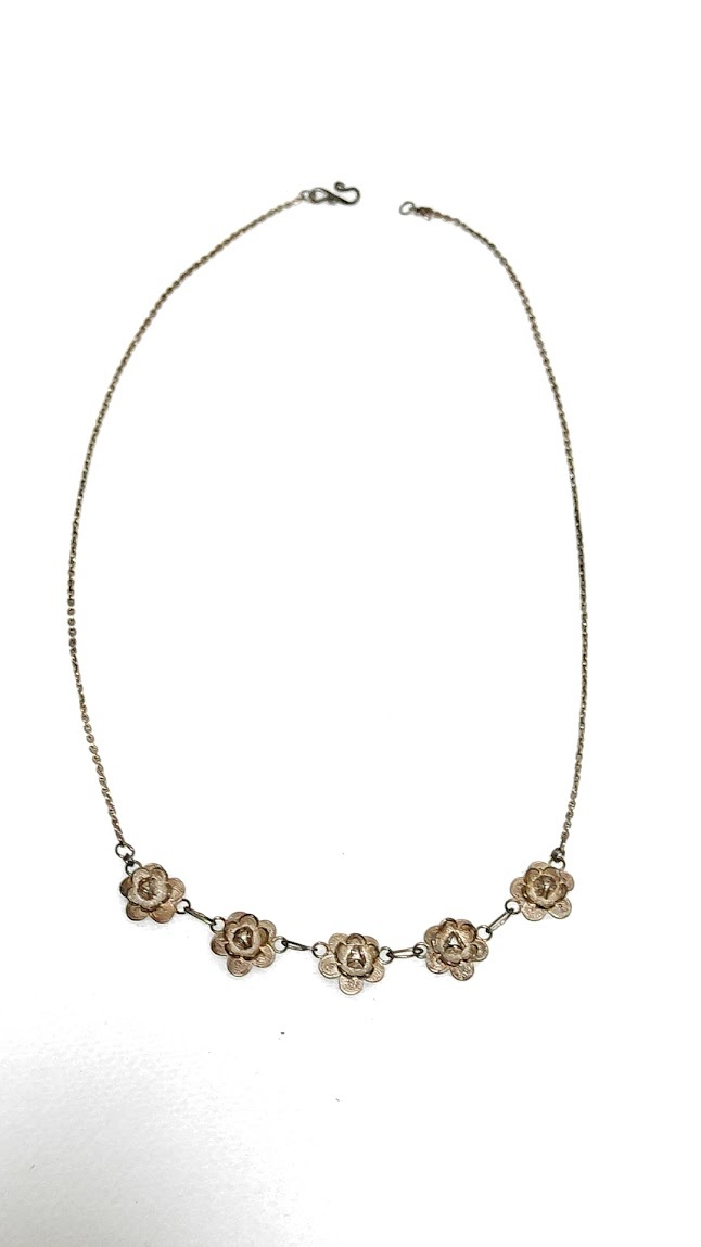 - 中古 ネックレス 花 チェーン いぶし銀 全長45cm