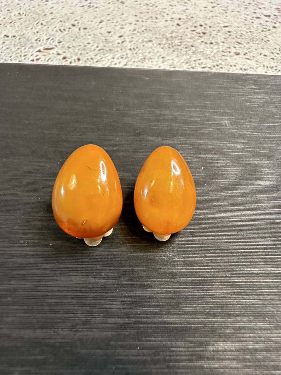 - T-461 天然 琥珀 アンバー 老蜜蝋 イヤリング 中古品