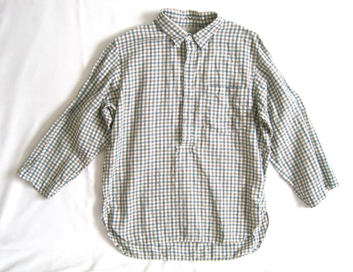 > MARGARET HOWELL マーガレットハウエル リネン ハーフボタン プルオーバーチェックシャツ 7分 S 日本製