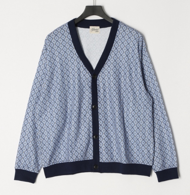 - セール! 残りわずか! 正規品 本物 新品 Fredy&GLOSTER サマー カーディガン 上品 爽やか オシャレ 青系 柄物 ジオメトリック ノーリーズ M