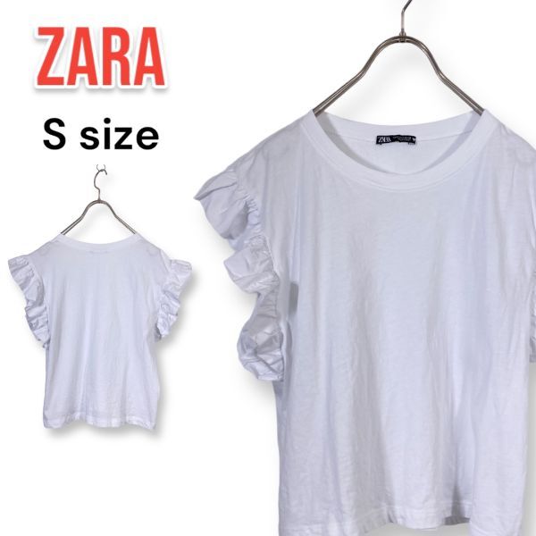 - ザラ ZARA ブラウス ホワイト 白 トップス レース フリル 半袖 ノースリーブ