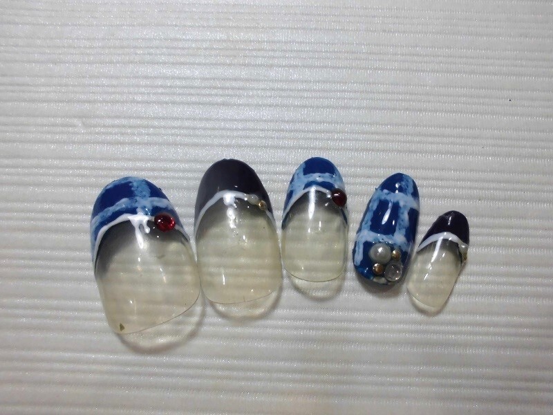 - ・(定型外orクリックポスト発送込み) チェックフレンチでネイルチップ ジェル使用作品