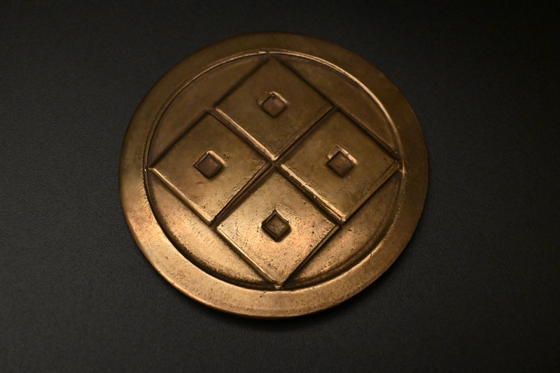 > 前立 ■ 家紋 [ 隅立て四ツ目 ] 前立 径約7.2cm] 真鍮 金属 ■ 鎧兜 甲冑 武具 部品 パーツ №9813■