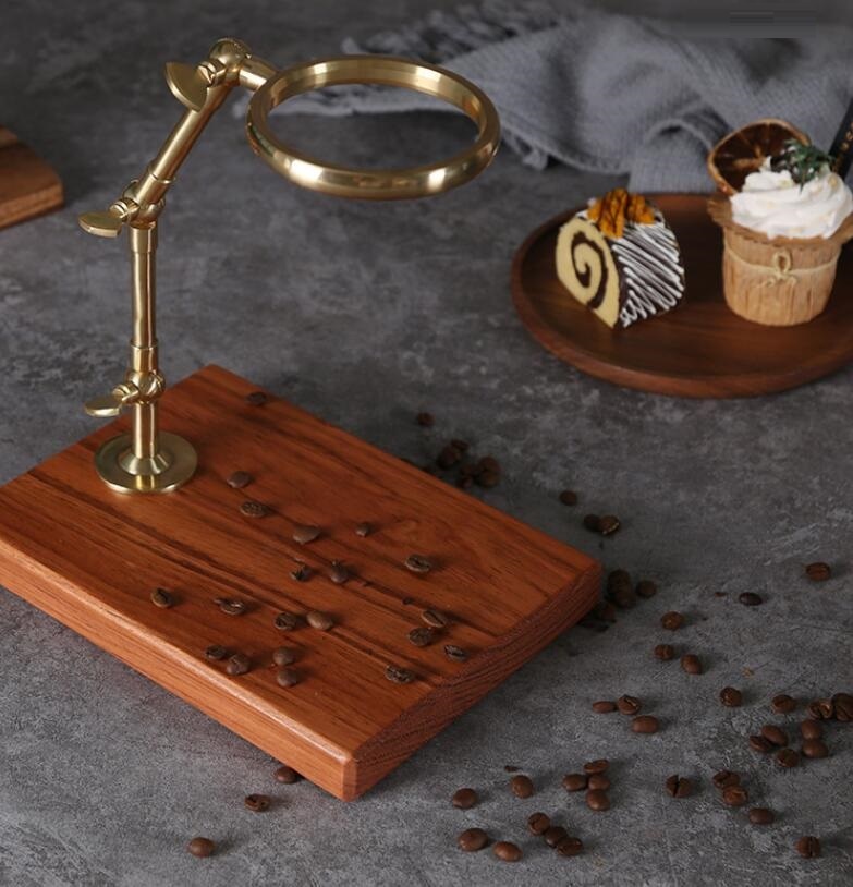 - 大人気 折り畳み コーヒードリップスタンド コーヒードリッパー 真鍮 木製の台座 高さ調整可 自由回転 簡易組立 耐久性と安定性 ★花梨の木