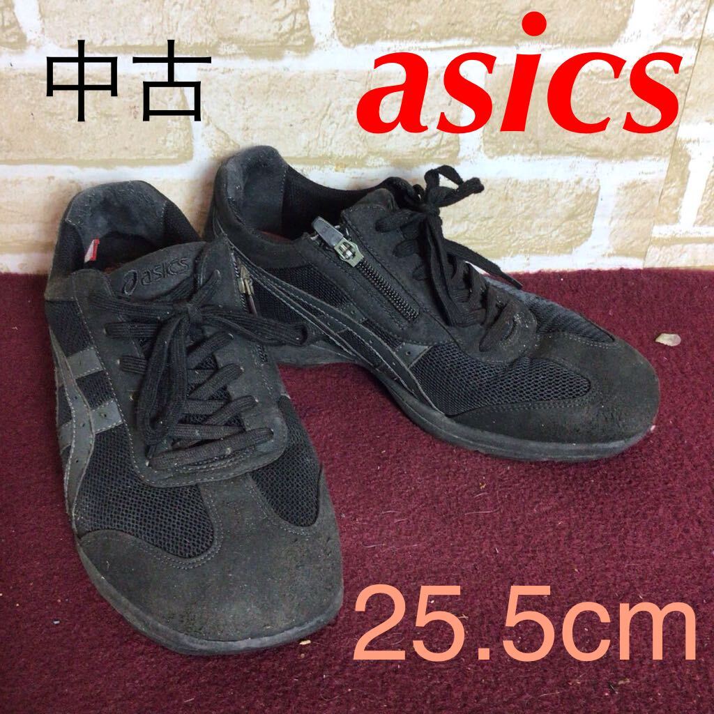 - 【売り切り!送料無料!】A-370 asics!スニーカー!25.5cm!黒!ブラック!普段ばき!ウォーキング!ランニング!トレーニング!中古!
