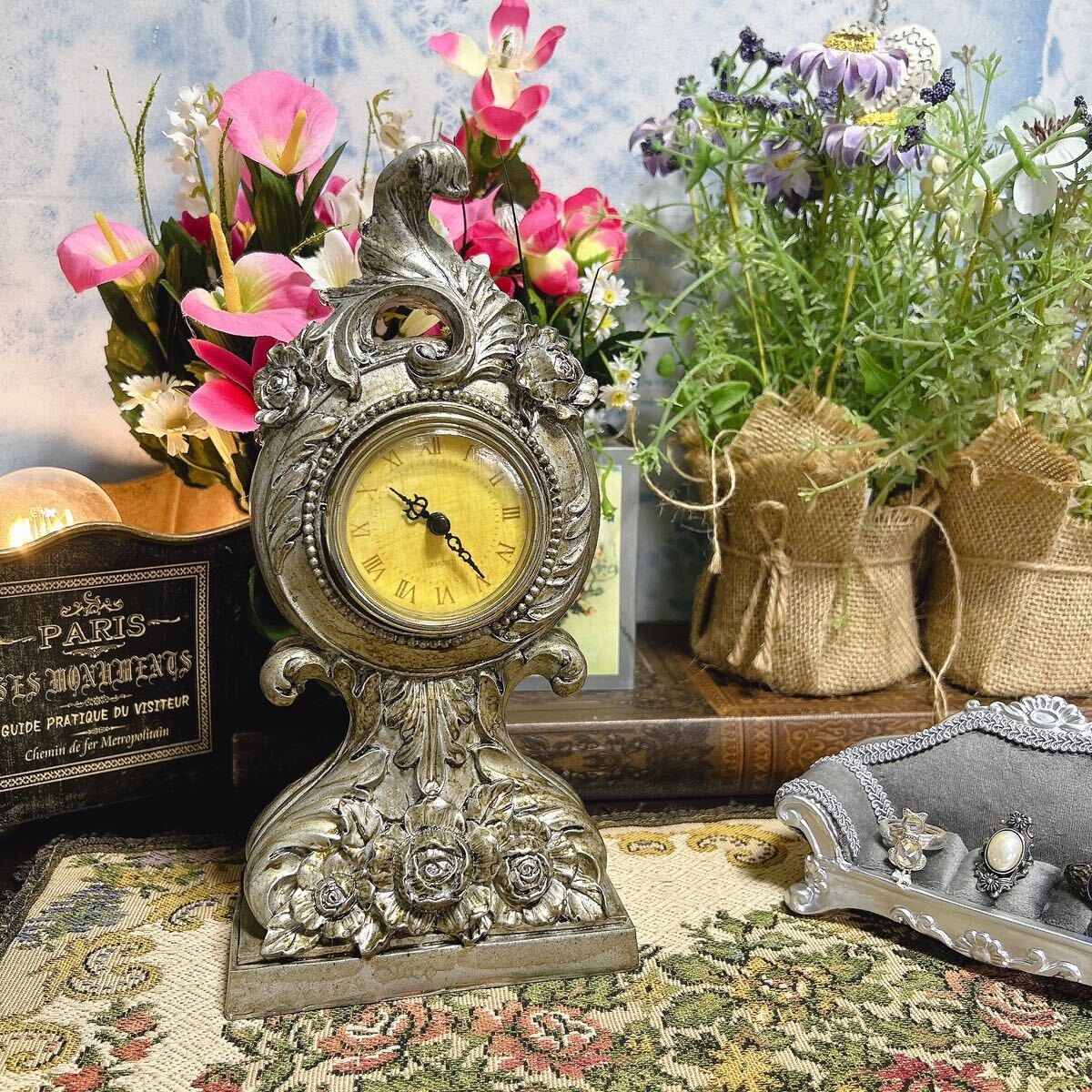- アンティーク雑貨 ロココ調 スタンドクロック(シルバー) 置時計 #店舗什器 #インテリア装飾品 #アンティークな部屋