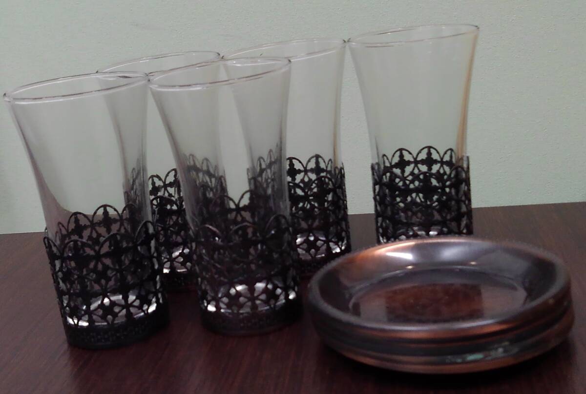 - 【10428A】 1円出品 ビールグラスセット 5客 コースター ビールグラス 骨董 美術 芸術 工芸品 食器 酒器 アルコール 現状品 2点まで同梱可