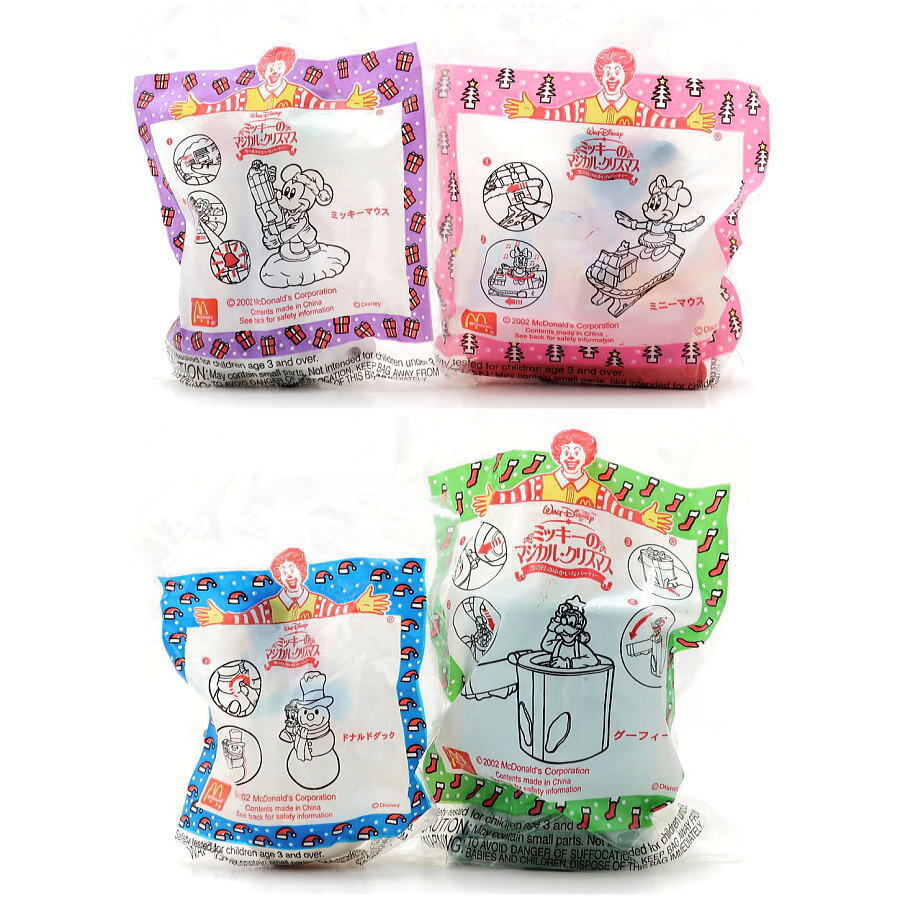- ディズニー ミッキーのマジカルクリスマス マクドナルド・ミールトイ 4個コンプリート 2002年 未開封 ミニー ドナルド グーフィー