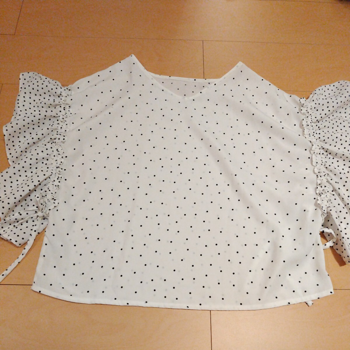 - elencare due グリーンパークス ドット トップス カットソー 春夏 半袖 可愛い キュート 袖あり シャツ 透け感 ブラウス