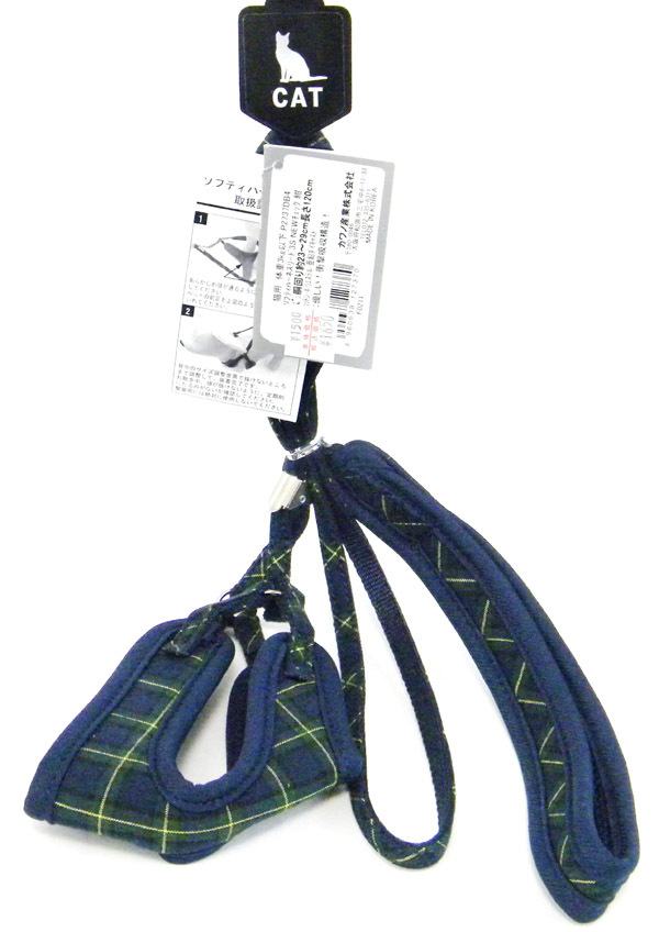 - ★ カワノ産業 ★ 猫用 ネコ用 ソフティハーネスリード 3S ★ チェック・紺(胴回り 約23~29cm)