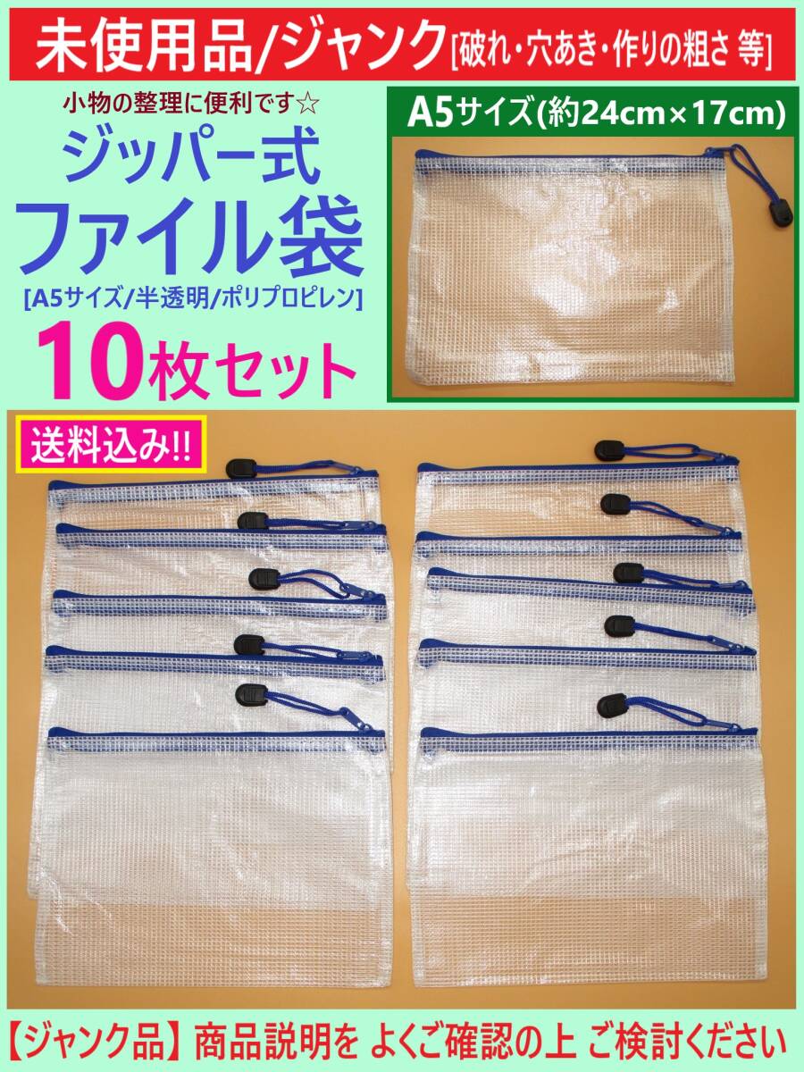> ジャンク 未使用 ジッパー式 ファイル 袋 A5サイズ 10枚セット 破れ 穴 キズ 半透明 白 メッシュ ファスナー ケース ポリプロピレン 海外製