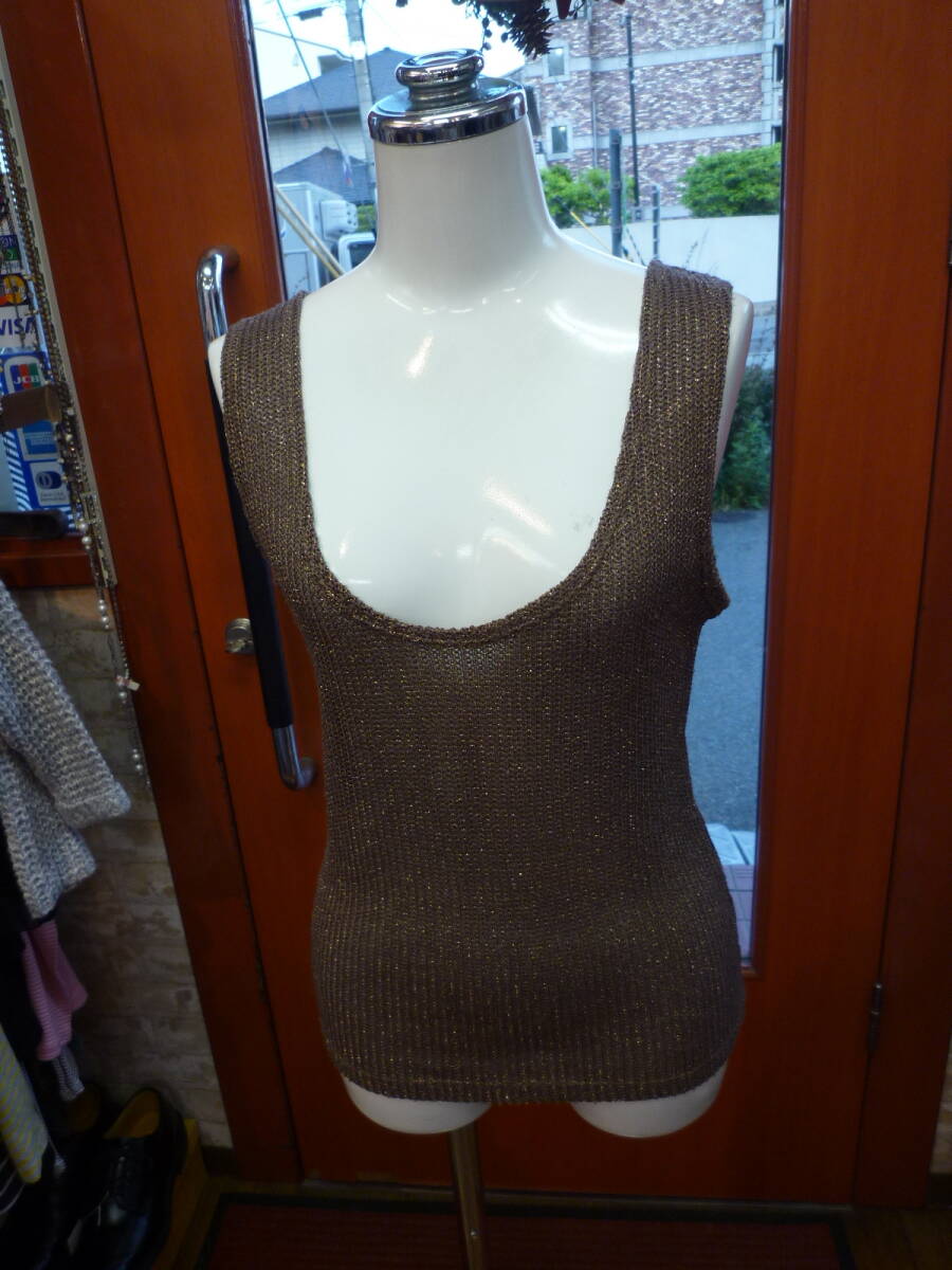- 【0528-8】茶ラメ ノースリーブカットソー サイズM