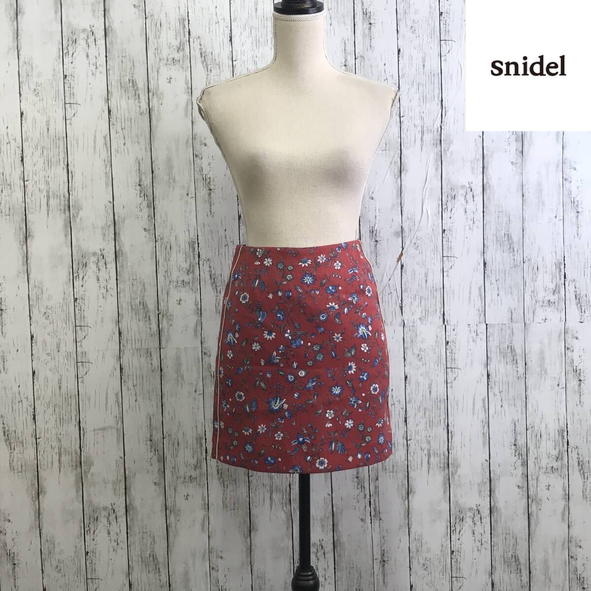 - SNIDEL スナイデル フラワープリントスクエアスカート 0サイズ レッド 台形シルエット ミニ丈 S5.11-192 USED