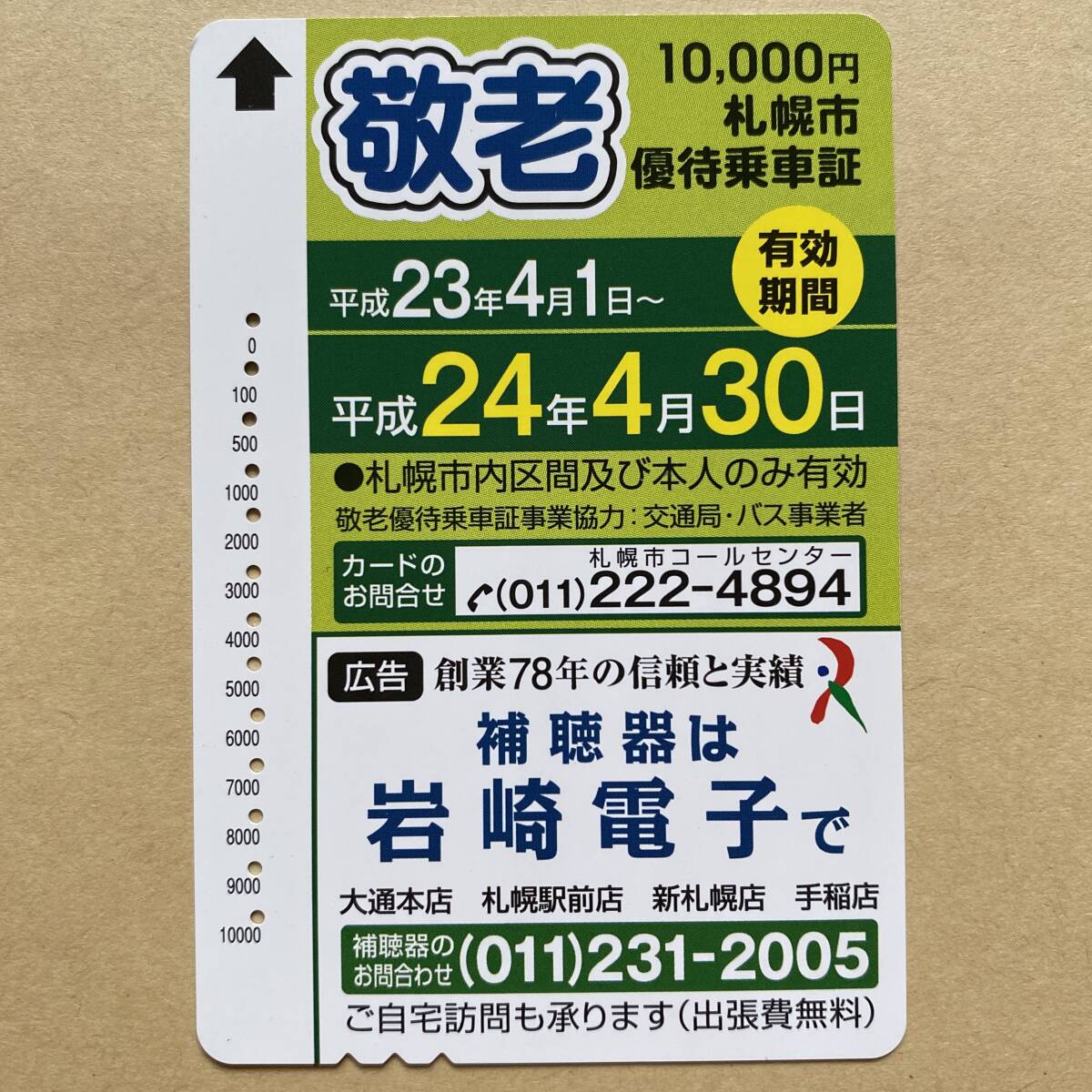 - 【使用済】 敬老優待乗車証 札幌市 有効期間 平成23年4月1日→平成24年4月30日 補聴器は岩崎電子で