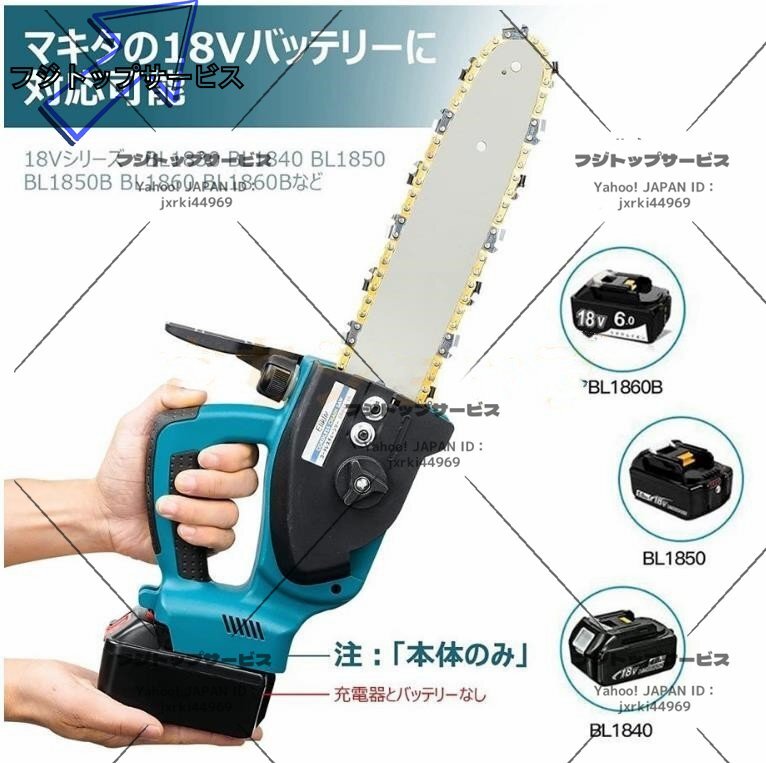 - 実用品★電動チェーンソー 18Vマキタバッテリー併用 12インチ チェンソー 充電式 ミニチェーンソー 強力 枝切り 木工切断 伐採 庭木の剪定