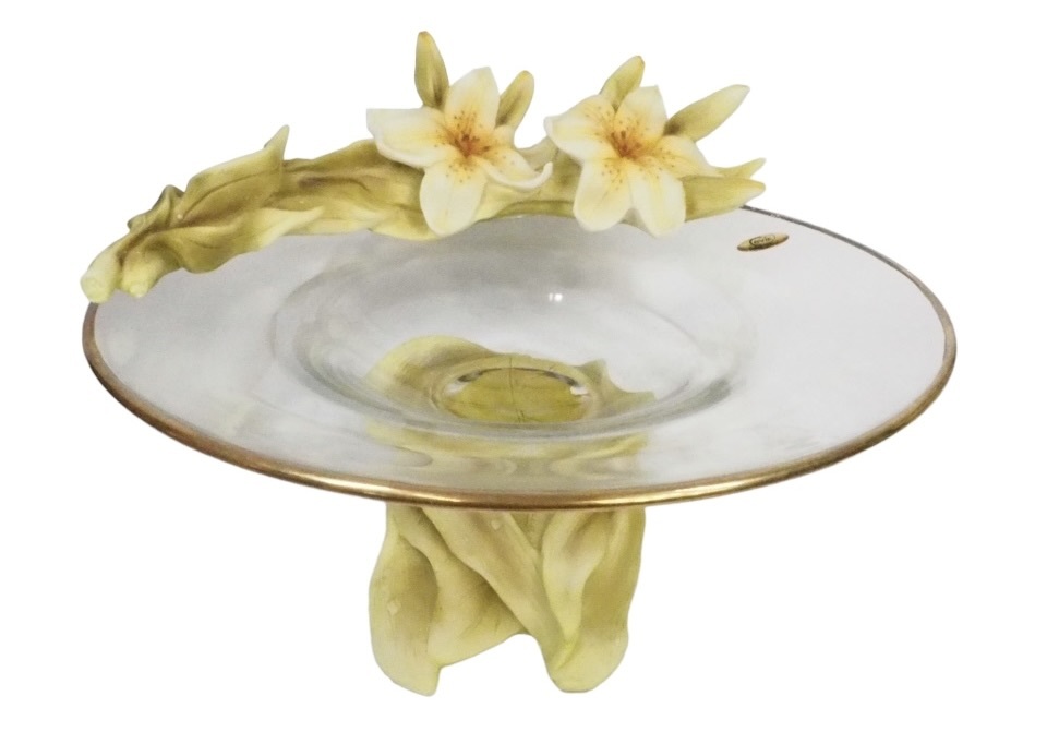 > 花の装飾が美しい洗練されたデザインの作品!西洋ビンテージ イタリア製 Cevik社 ガラストレイ ガラス皿 1980〜1990年代 SMG606