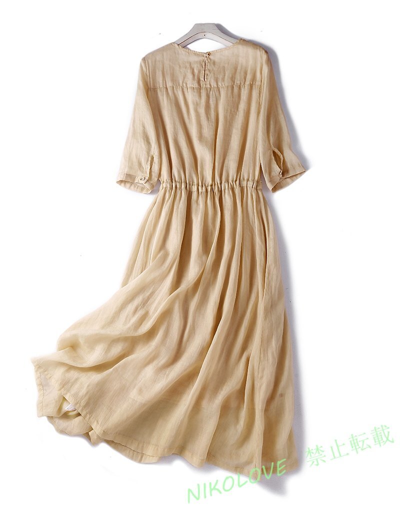 - 新品カジュアル 体型カバー レディース じゅんしょく 丸首半袖ロングワンピース M~2XL シャンパン色 LH411