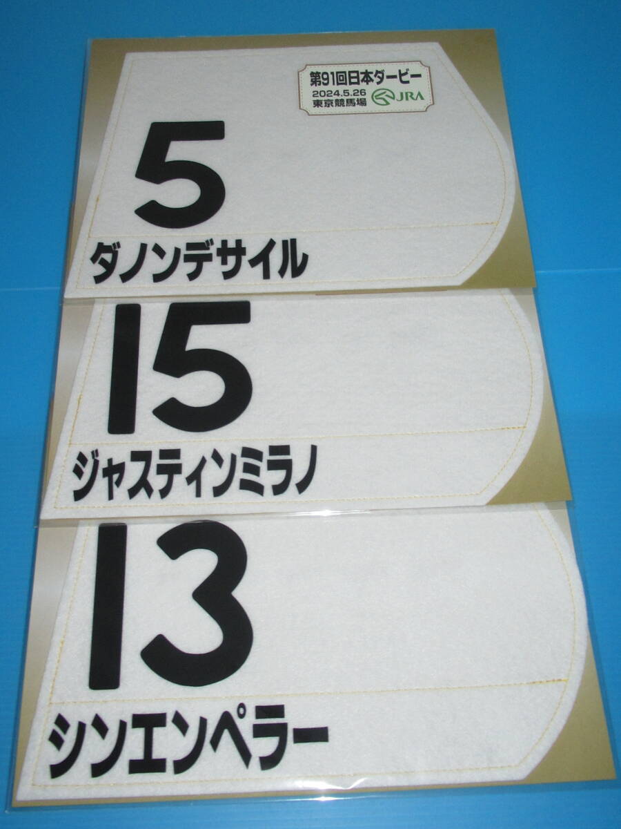 > 匿名送料無料 ★第90回 日本ダービー ダノンデサイル/ジャスティンミラノ/シンエンペラー ミニゼッケン 3枚Set JRA 東京競馬場 限定 即決!