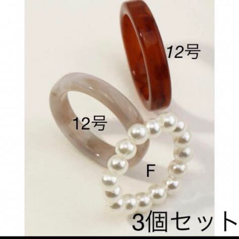 - 秋冬 フェイクパール べっこう風 リング 指輪 ブラウン×グレー×ホワイト
