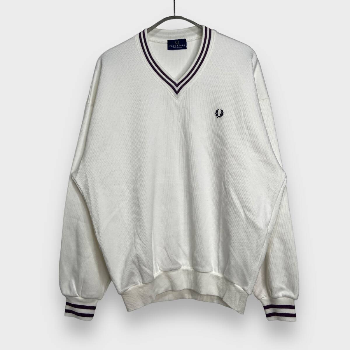 - 送料無料☆FRED PERRY☆フレッドペリー☆チルデンスウェット☆Vネックスウェット☆ホワイト☆L相当☆日本製☆F24M