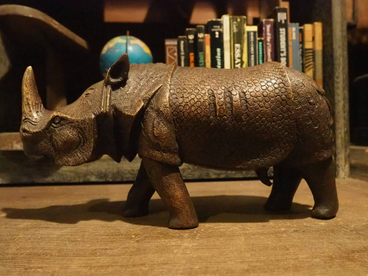 - 【フランス蚤の市木彫り無垢のサイ】プリミティヴアート古道具アンティーク骨董インテリア木工インダストリアル木彫カバ