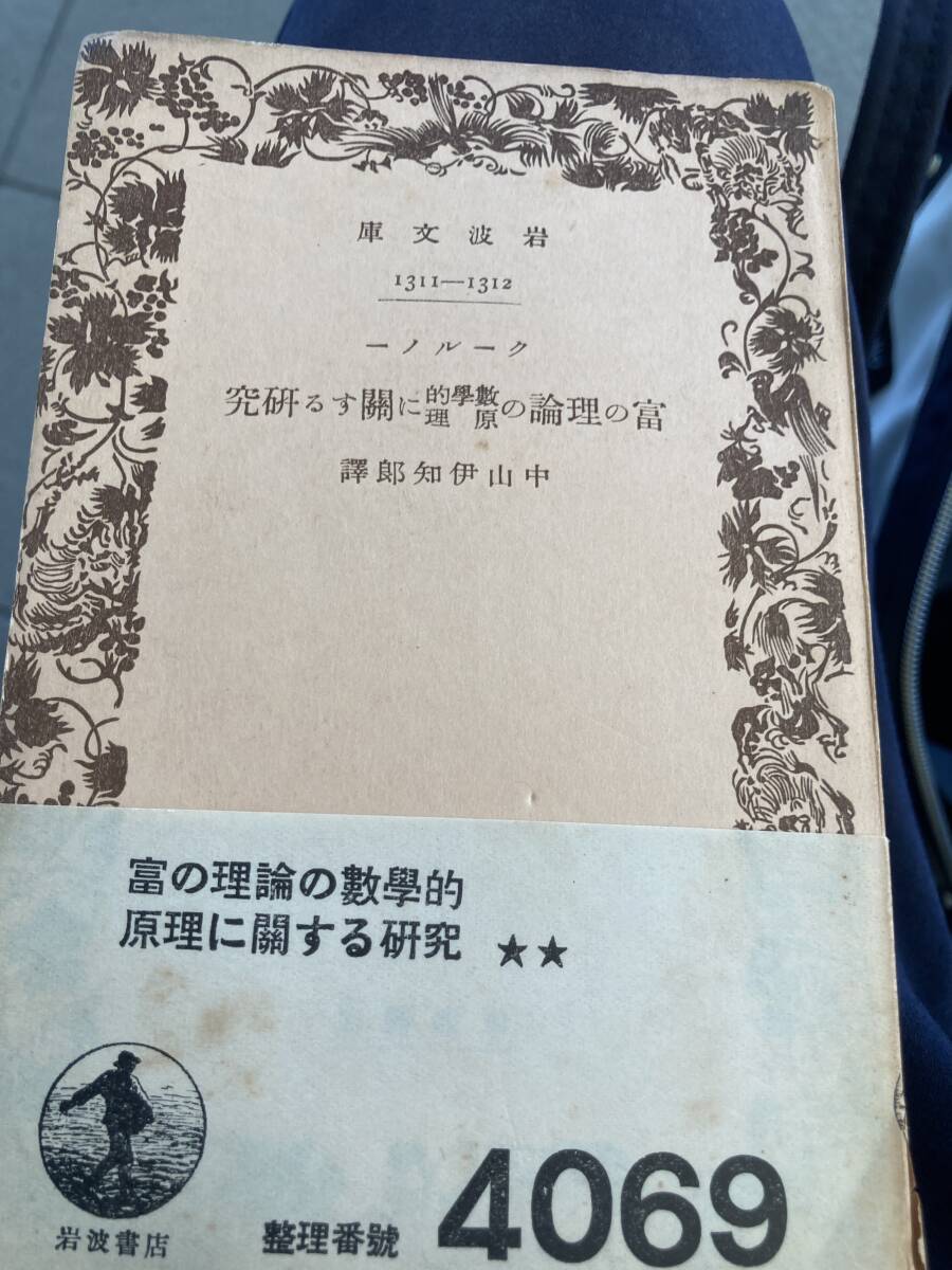 - 富の理論の数学的原理に関する研究 クールノー 岩波文庫 昭和11年 帯