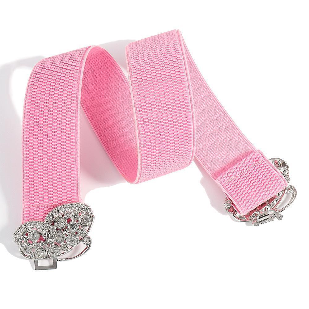 - ピンク★蝶々バックル 幅広ゴムベルト レディースベルト
