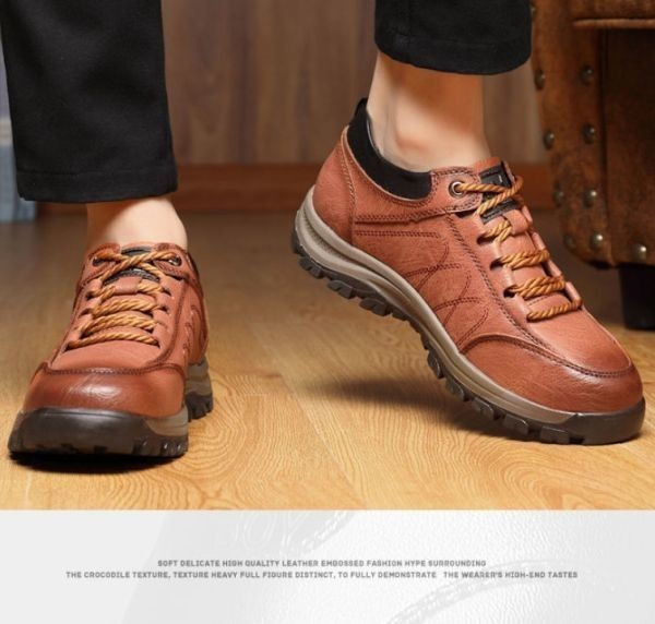- 靴 【27cm】【 s32 茶 】 メンズ ローカット レザー調 PUレザー スニーカー シューズ スポーツ カジュアル シンプル ビジネス 通勤 通学
