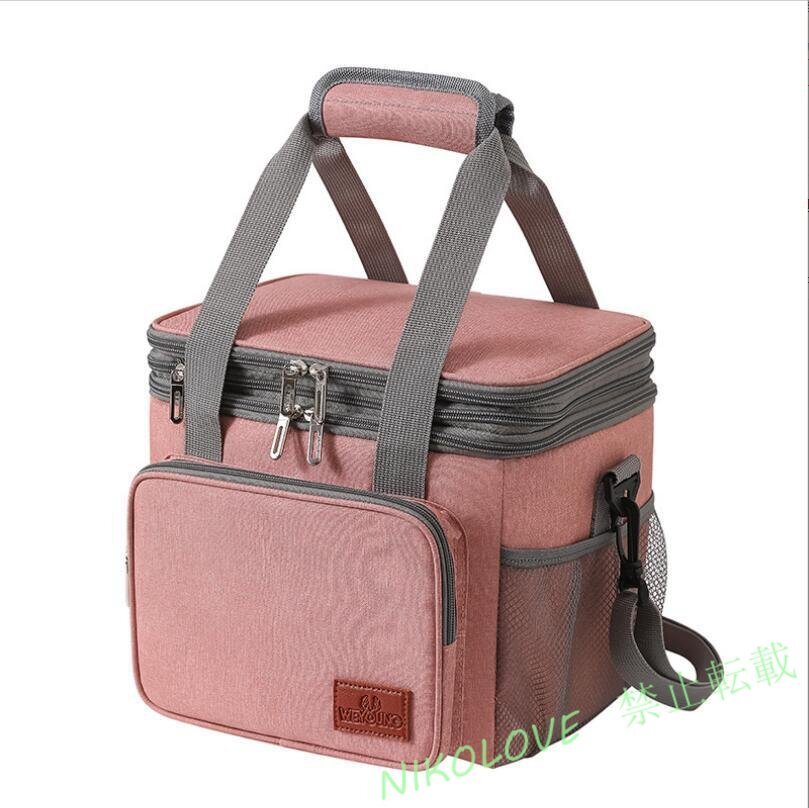 - 新品保冷バッグ ランチバッグ 二層式 保冷保温 15L 大容量 保温 断熱バッグ クーラーバッグ キャンプ アウトドア ピンク LD716