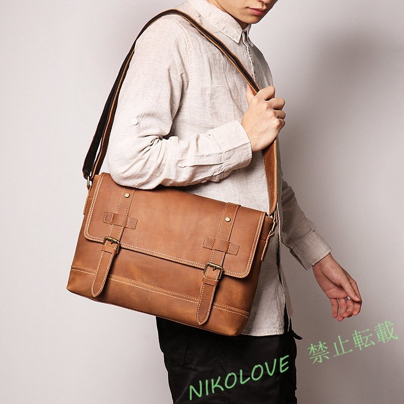 - 新品美品登場 職人手作りヌメ革 メンズ ショルダー メッセンジャーバック 斜めがけ 肩掛け レザー ビジネスバッグ 大容量 通勤 LF452