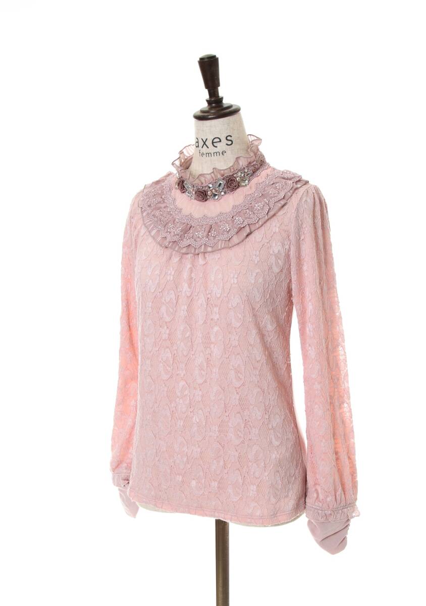 > 476◇首元付属使いレースプルオーバー 淡ピンク axes femme アクシーズ ファム TS33X57