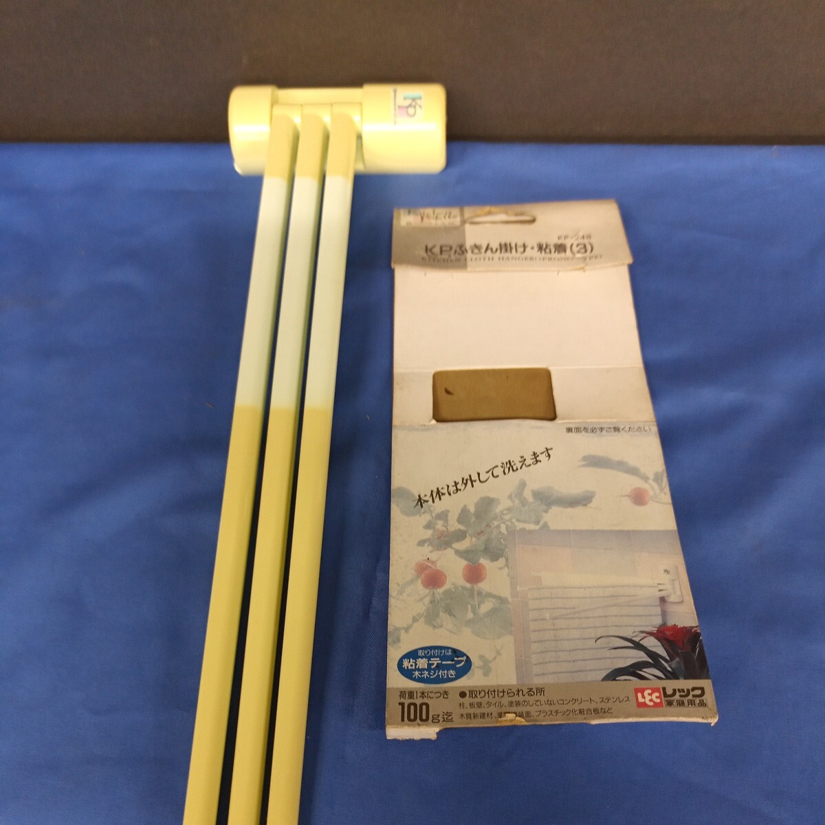 - KPふきん掛け 3本腕 粘着テープ(木ネジつき) グリーン 変色あり