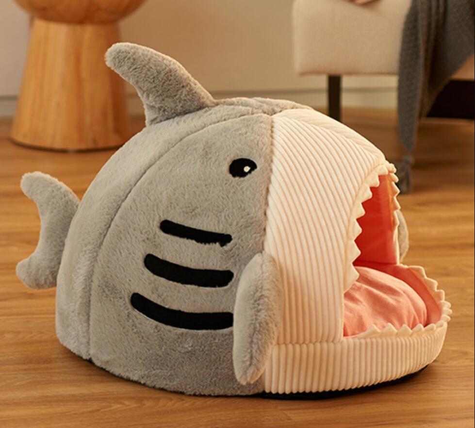 - グレー / 猫 犬 ベッド サメ型ペットベッド ふわふわ もこもこ キャット 滑り止め ペット クッション 柔らかい / S、M、L サイズ選択可