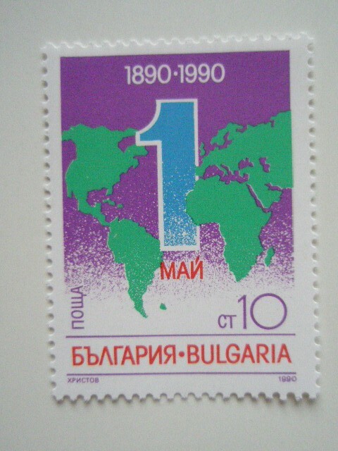 1990年発行のブルガリアの切手「 初のメーデーから100年」 です。